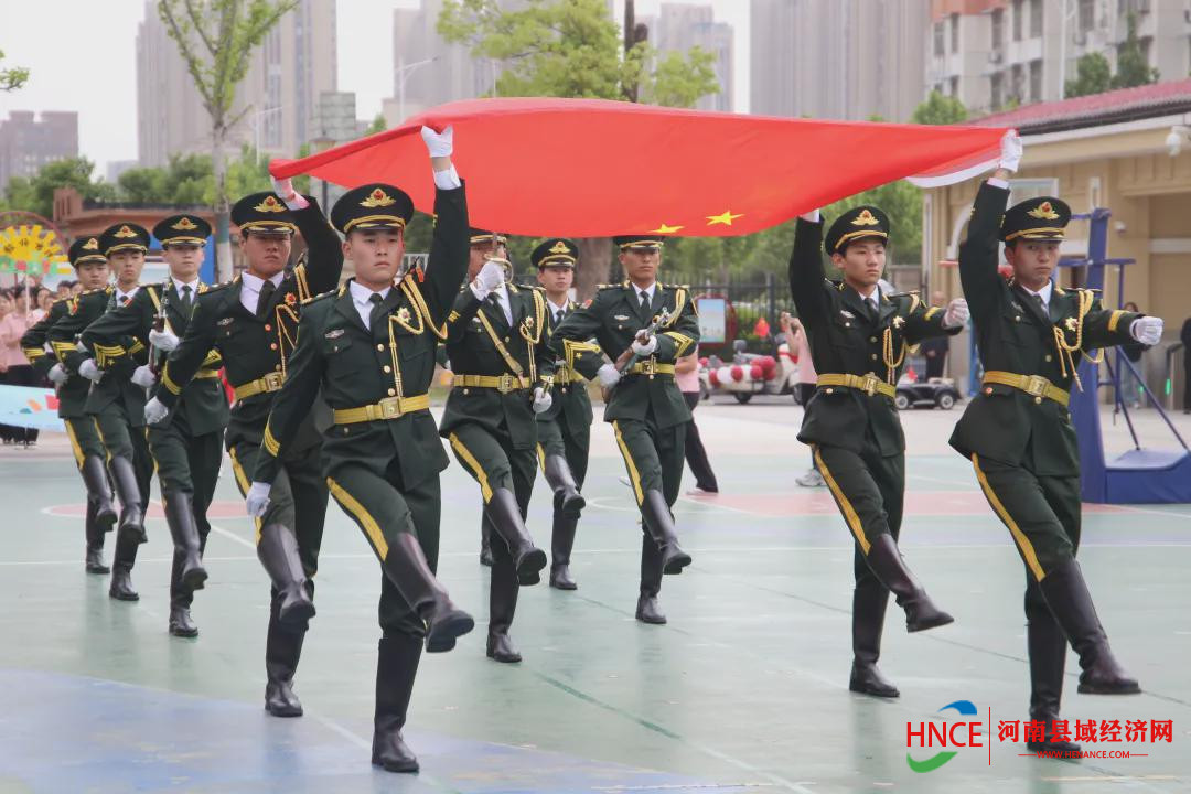 伴随着雄壮的运动员进行曲,国旗护卫队身着制服、精神抖擞,迈着坚定的步伐,意气风发向前行进,用他们的热情点亮了幼儿园的晨曦。