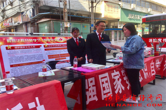 河南县域经济网焦作讯:为提高辖区群众维护国家安全的法律意识,4月15日,在第四个“全民国家安全教育日”当天,焦作解放区法院组织青年干警来到商户众多、人流聚集的香港城附近,开展全民国家安全教育日普法宣传活动,现场为过往群众普及国家安全的相关法律知识。