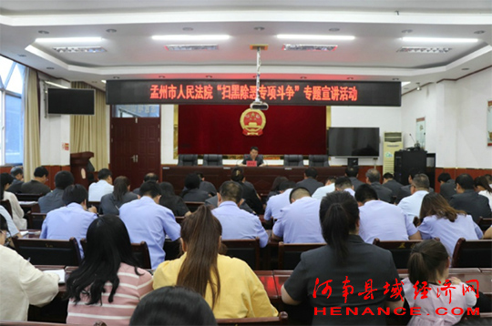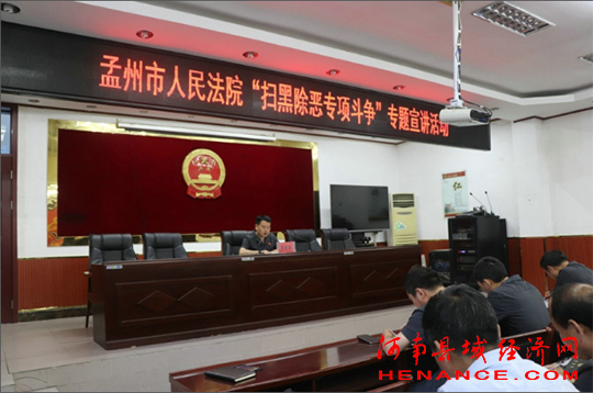 河南县域经济网焦作讯:为持续推进扫黑除恶专项斗争纵深开展,明确扫黑除恶专项斗争的重要性, 5月20日晚上6:30分,焦作孟州法院组织全体干警在一楼会议室进行“扫黑除恶专项斗争”为主题的集中宣讲。