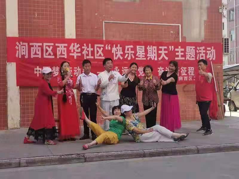 8月1日上午,灵宝市涧西区西华社区主办的“快乐星期天”主题文化活动在辖区营田小区举行,来自西华社区文化合作社的演员们为小区居民献上了一场精彩的文艺演出。