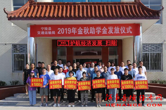 河南县域经济网商丘讯:(黄波 通讯员 林鑫)8月16日上午,宁陵县交通运输局举行金秋助学仪式,为10名大学生发放助学金1万元。