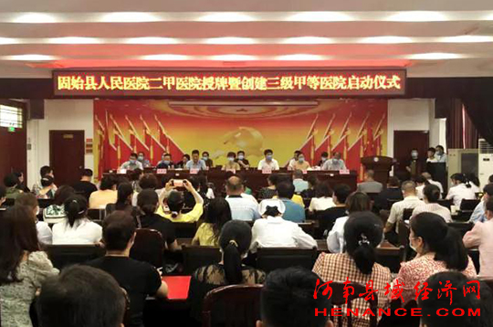 河南县域经济网信阳讯 2020年8月12日下午三点,“固始县人民医院二甲医院授牌暨创建三级甲等医院启动仪式”在医院大会议室隆重举行。仪式由固始县人民医院党委书记王磊主持。固始县副县长祝文娟,固始县县卫健委主任汪理明,副主任张丽、李国平同志出席启动仪式,固始县人民医院领导班子成员及医院干部职工代表参会,共同迎接医院发展历史当中这一重要时刻。