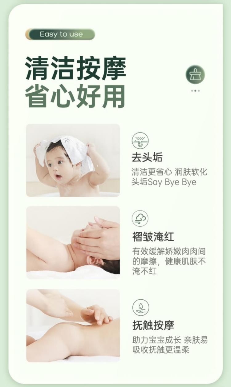 给宝宝做抚触有很多好处,比如帮助促进宝宝消化吸收、有助于睡眠、增进亲子间的感情等。很多妈妈在学习给宝宝抚触的时候也会学到需要给宝宝挑选一款合适的婴儿油,抚触的过程搭配使用,可以滋养宝宝全身肌肤。但市面上很多婴幼儿抚触油的安全性却不容乐观,比如添加激素等有害物质,或者添加婴儿娇嫩肌肤并不能很好适应的矿物油。一款亲肤性好、安全性高、养肤性好的婴儿抚触油才应该是妈妈们的理想之选,比如经典国货松达旗下的松达婴儿护肤山茶油。专为婴儿抚触设计用油,成分安全、温和滋润、亲肤性好,滋润保湿的同时还能呵护皮脂膜,守护宝宝健康成长。