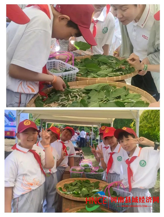 孩子们轻提竹篮走进桑园,指尖摘下鲜嫩桑叶,小心翼翼铺在蚕匾上,沙沙的进食声化作最生动的自然课。最后,孩子们在老师的指导下把剩下的桑叶揉捻。掌心的温度揉进叶片褶皱,青气渐散时,清甜的草木香漫过指尖。当沸水泡开第一盏茶,舒展的叶影里浮动着阳光与微风的味。
