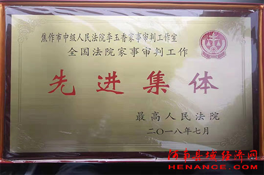 河南县域经济网焦作讯:俗话说:清官难断家务事。但在焦作,有一个名叫李玉香的女法官,专门审理家务事,以她个人名字命名的工作室,使近万个濒于解体的家庭破镜重圆,近日被最高人民法院授予全国家事审判先进集体。