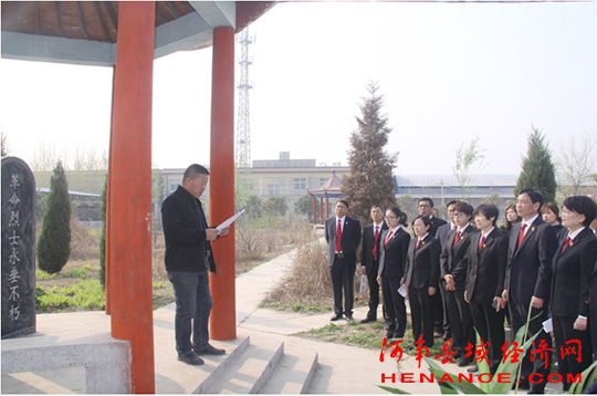 河南县域经济网焦作讯: 4月4日,在清明节即将来临之际,为缅怀革命先烈,发扬光荣的革命传统,焦作马村区人民法院组织全体干警到亮马村开展以“缅怀革命先烈 凝聚出彩力量”为主题的清明祭奠暨主题党日活动。