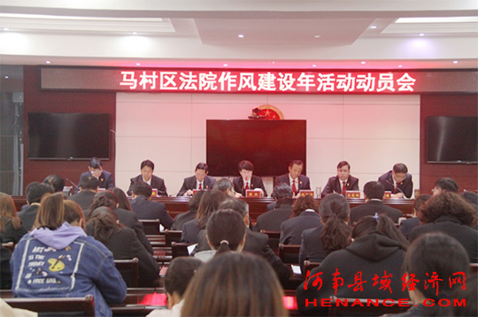河南县域经济网焦作讯:近日,焦作马村区人民法院召开作风建设年活动动员会,会议由党组成员、副院长赵旭升主持,院党组书记、院长陈红,派驻纪检组长李长献出席会议并讲话,全体干警参会。