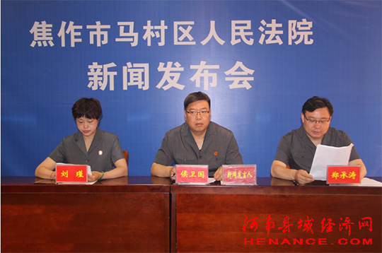 河南县域经济网焦作讯: 5月17日下午,焦作马村区人民法院召开“执行办案百日竞赛”专项活动新闻发布会,新闻发言人、政治处主任侯卫国主持会议,执行局局长郑承涛、执行局执行法官刘瑾出席会议。中国新闻网、人民日报社法治周刊、东方今报、河南经济报、焦作晚报、焦作电视台等多家媒体到会。