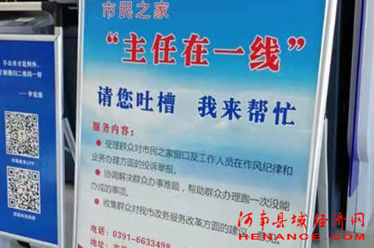 河南县域经济网讯:为了保证群众办事“最多跑一次”能不折不扣地得到执行,济源市在“市民之家”行政服务大厅设立“跑一次没办成投诉窗口”,让群众来吐槽。通过收集投诉意见、反馈难点、解决问题,来打通群众办事遇到的大小“堵点”。