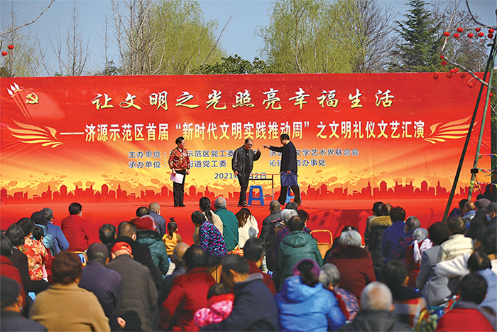 济源示范区首届“新时代文明实践推动周”活动以“让文明之光照亮新征程”为主题。按全省要求,活动着眼于文明提升和服务群众,精心设置了“讲文明礼仪”“学党史国史”“送文艺节目”“献暖暖爱心”“送健康科普”等五类主题文明实践活动,以主题日活动的形式逐次开展。这一系列活动将成为擦亮济源的一张靓丽文化名片。