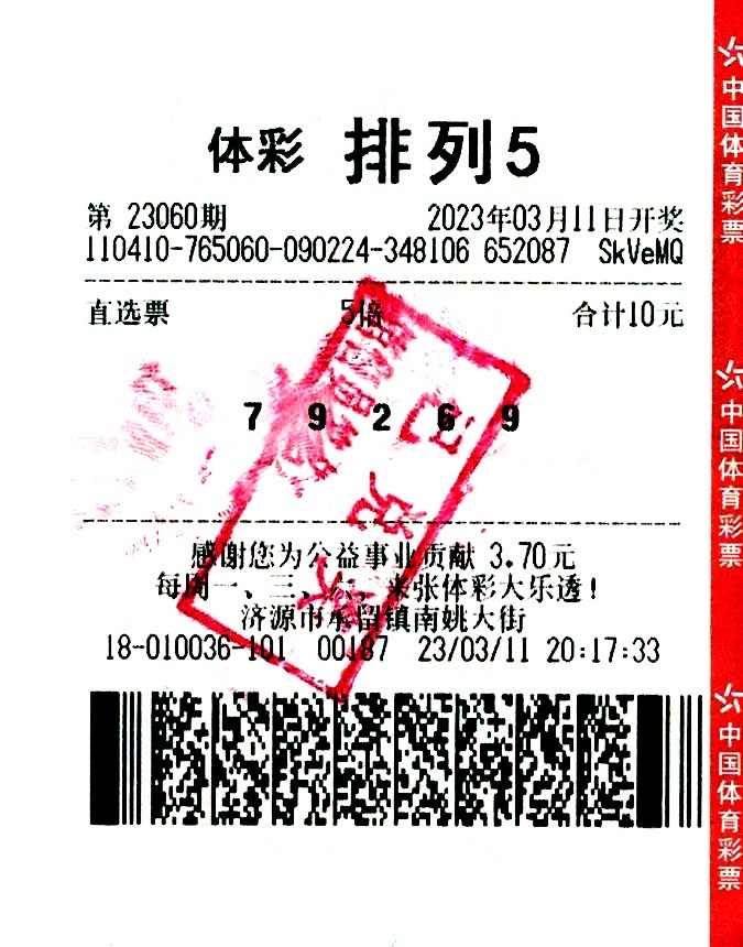 体彩排列5第23060期开奖。河南济源购彩者赵先生(化名)收获50万元大奖。