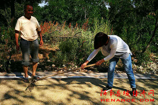 “他的岳父陈由73岁了患帕金森综合症干不了活,自己又身有残疾,干不了重活。我们联系已经完成夏收任务的村庄,介绍收割机来这边作业,也帮着摊摊麦子。 ”观音堂镇糯米沟第一书记张翼介绍。