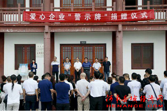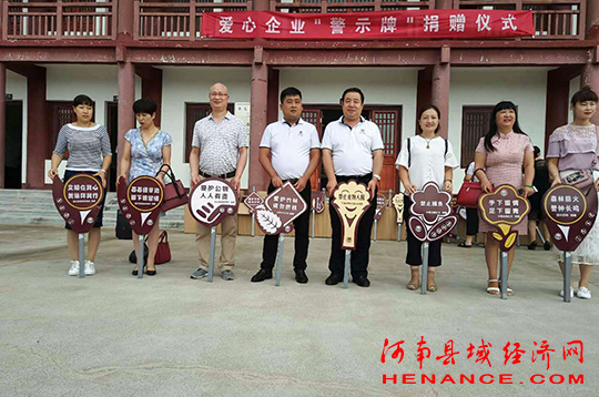 河南县域经济网讯:7月11日上午,三门峡市十三家爱心企业来到黄河公园举行警示牌捐赠活动。为黄河公园管理处精心制作警示宣传标牌共500个,价值150000元。内容涵盖文明游园、保护环境、消防安全、防溺水、人身安全等。