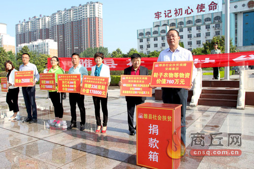 5月7日,睢县社会扶贫捐赠仪式在该县行政中心广场举行,当天共收到社会各界捐款捐物价值902万元。