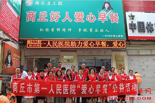 据了解,商丘好人爱心早餐是由商丘义工联发起的商丘市首家以“商丘好人”命名的免费早餐关爱项目。本项目以义工联“日行一善、日捐一元” 为依托,组织、倡导该市热心义工和社会各界爱心人士积极参与,同时采用“日包场”、“周包场”、“月包场”等多种捐助方式,每天为上早班的环卫工人免费提供早餐,传递社会各界的爱心和温暖,受到了社会各界广泛好评。