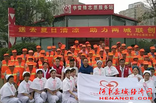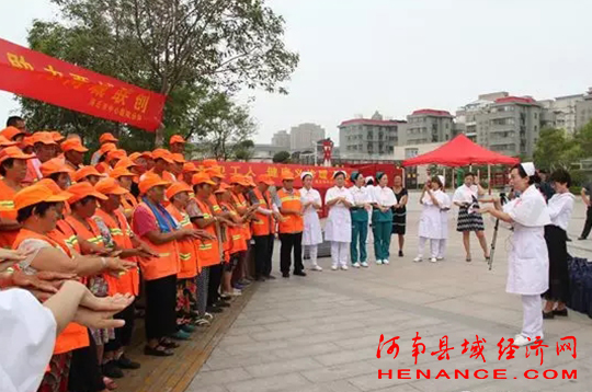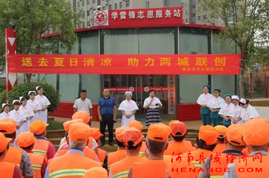7月25日上午,商丘市中心医院在商丘市志愿服务主题公园(白云广场)举行“送去夏日清凉,助力两城联创”主题活动,为坚守在一线艰辛工作的他们送去夏日清凉和健康,让酷热的夏季变清凉,用行动致敬城市的美容师,对他们表示深深的关怀。