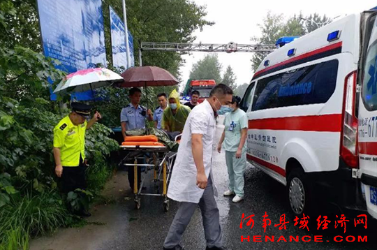 不久,胡族派出所和120救护车相继到场,120救护人员将老人抬上救护车后送院治疗,公安部门处理完现场,交通恢复通行后,交通执法人员立即返回工作岗位继续执勤。