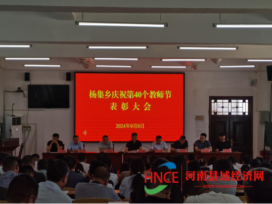 河南县域经济网讯 9月8日上午,杨集乡在乡中心校礼堂举行庆祝第40个教师节表彰大会,会议表彰教育工作先进单位4个、教学名师7名、师德标兵8名、优秀班主任8名、优秀教师8名。杨集乡领导班子成员出席会议,乡直各单位负责人、各村(社区)党支部书记、全乡中小学校教师等共180余人参加会议。乡党委副书记、乡长孟垦同志主持会议。