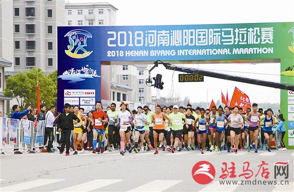 4月22日,以“山水可染 诗画泌阳”为主题的2018河南泌阳国际马拉松赛在泌阳县人民路鸣枪开赛。这是该县首次举办国际马拉松赛事。来自世界各地的近万名跑者齐聚泌阳的秀山丽水间,在展示马拉松运动极致魅力的同时,感受这座生态之城不停向前“奔跑”的城市精神。见习记者 张 建 摄