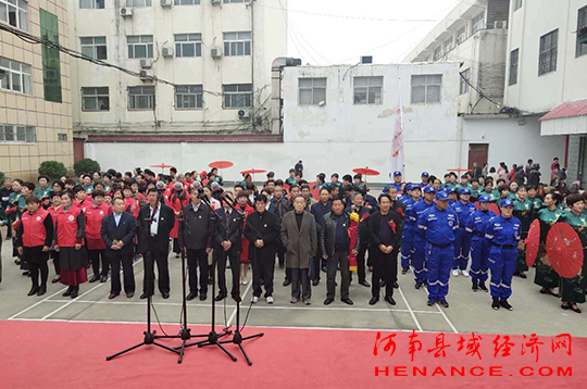 揭牌现场,腰鼓队伴着欢快的节拍载歌载舞,天中丽人模特走秀队踏着乐曲一遍遍表演着。