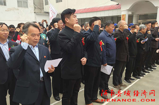 由新任职的汝南县国学文化促进会会长王德明的带领,进行了新任职就职会员宣誓;由新任职的汝南县国学文化促进会秘书长张继光带领新会员入会宣誓。