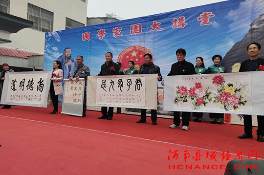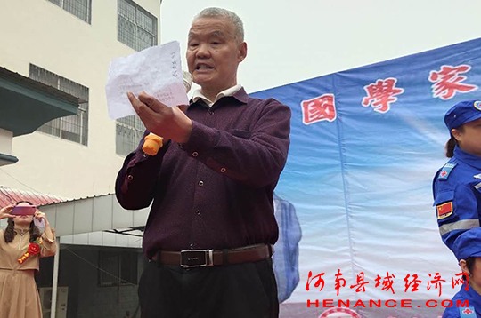 汝南县书法协会主席刘炳松激情致贺词:他说国学文化是国家民族赖以生存的精神支柱,先贤们已经教导我们:“勿忘团结奋斗,致力振兴中华”;教我们:“老吾老及人之老,幼吾幼及人之幼”;教我们:“友朋至远方来不亦乐乎”;教我们:“先天下之忧而忧,后天下之乐而乐”;教我们:“头悬梁,锥刺骨”;“好好学习,天天向上”;“天下为公”等等。这些精典,精辟而又催人奋进,是我们这个国家和民族生生不息,兴旺发达的精神食粮。把它发扬光大是我们的责任,利用国学文化产生推动作用和鼓舞力量!