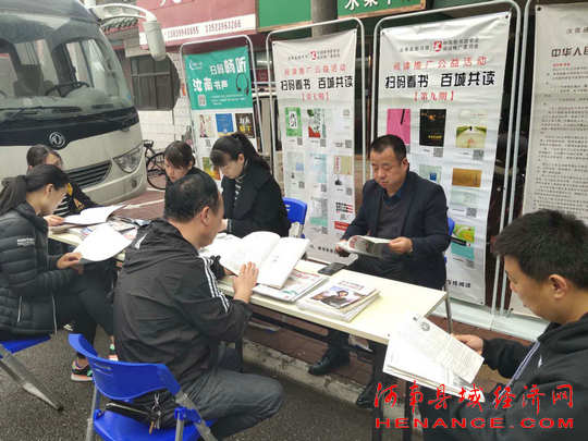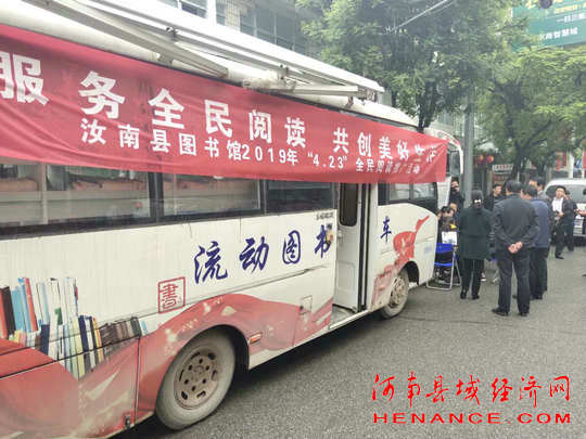 河南县域经济网驻马店讯:(刘文喜 通讯员 韩祥荣)为深入学习贯彻习近平新时代中国特色社会主义思想和党的十九大精神,贯彻落实政府工作报告中“倡导全民阅读,推进学习型社会建设”的重要部署,迎接新中国成立70周年。4月23日,在第24个世界读书日来临之际,汝南县图书馆在县委门口举办了“服务全民阅读·共创美好生活”世界读书日庆祝活动,吸引各界群众广泛参与,由此拉开了汝南县图书馆2019年全民阅读活动序幕。图书馆利用流动图书车、流动书展、“汝图有声”、“扫码看书”展板等方式,营造浓郁的书香氛围,“4.23世界读书日”活动正式启动。