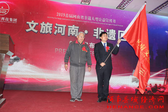 启动仪式共同按动光电球的领导嘉宾有:原河南省文化厅副厅长(省摄影协会会长)李相晨、省社会科学院党委副书记周立、河南省人民政府参事研究会参事郑进国、抗美援朝战斗英雄“黄继光团”团长贾高林、省非物质文化遗产保护中心主任裴景岭、河南省文化厅机关原党委书记(现任郑州市文化艺术品交易中心党委书记)秦书祥、全国百强报媒《河南科技报》常务副社长(河南省科技新闻学会秘书长)李志民、河南文旅科技集团董事长(非遗传承人)胡政委。启动会上授旗仪式李相晨代表专家顾问团为胡政委授旗。在嘉宾讲话环节,与会专家领导纷纷献言献策,抗美援朝战斗英雄“黄继光团”团长贾富林、河南科技报常务副社长李志民、河南省通俗文化研究中心秘书长李贵平、豫剧表演艺术家海金凤、原河南省文化厅机关党委书记(现任郑州市文化艺术品交易中心党委书记)秦书祥、河南省社会科学院党委副书记周立,分别高度赞扬文旅河南·非遗匠心新闻发布会大型公益宣传推荐活动,并充分了肯定了河南文旅科技集团倡议的“河南文旅产业聚合发展——构建河南品牌·河南礼品”的战略构想,希望大家群策群力共同打造“老家河南·多彩中原”的美丽家园。