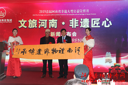 河南县域经济网驻马店讯:(刘文喜 通讯员 李江武)4月26日上午,由河南文旅科技集团、中国科技110网、《河南科技报》、河南广播电视台公共频道为联合承办单位,人民网、新华网、央视网、记录中国tv、中国旅游报、中国消费者报、中国网、中国食品安全导报、河南广播电视台(新闻频道、民生频道、新农村频道)、河南日报、大河报、东方今报、河南经济报、今日头条、党的生活网、大河网、大豫网、腾讯网、和讯网、郑州电视台、河南县域经济网及公众号平台(世界农业博览会、中原百姓民情之声、豫农财经)等30多家中央级、省级新闻媒体单位友情协办支持的"2019首届河南省非遗大型公益宣传月——文旅河南·非遗匠心新闻发布会"在河南省科技馆(郑州)隆重举行。发布会上,来自全省各市县文旅部门领导及行业知名专家、民间艺人及旅游产业等100多名嘉宾莅临现场。省内外非遗传人及民间艺人带来了非遗产品展览展示及才艺精彩表演,可谓“八仙过海各显神通”, 为大家展示非遗文化的独特魅力和匠心精神,现场吸引了到会的30多家新闻媒体单位记者的争先恐后围观及聚焦采访。本次发布会旨在“弘扬传承匠心精神,打造河南礼物和河南非遗品牌”。活动发起单位之一河南文旅科技集团的龙头示范带动作用,得到了到会的众多国家级、省市级行业权威专家的共同点赞及各级领导充分肯定。