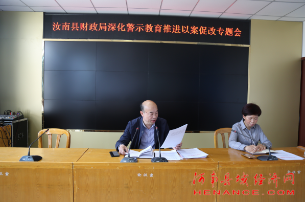 河南县域经济网驻马店讯:(刘文喜 通讯员 张建飞 杨保全)为进一步推动以案促改制度化常态化,持续构建不敢腐不能腐不想腐体制机制,汝南县财政局5月10日下午,组织开展深化警示教育推进以案促改专题会。