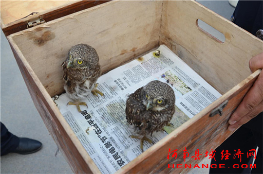 接报后,汝南县森林公安局一方面安排民警迅速驱车前往,另一方面联系县野生动物保护部门的技术人员参与救助。民警到达源色股份有限公司后,从公司保安手中接过了这两只小猫头鹰。并对公司保安热心救助野生动物的爱心之举给予了赞赏和肯定。
