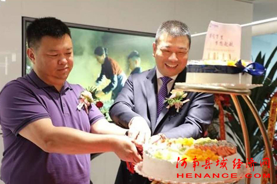接下来便是隆重而激动人心的揭牌时刻:大幕缓缓拉开,礼花齐齐绽放,刘维董事长和朱新红总裁共同为郑州新址揭牌。在大家热烈的掌声中,两位领导共同切开蛋糕,开启香槟,香槟预示同庆,蛋糕意味分享,一路走来的风雨化作香醇的美酒和香甜的蛋糕,现场的每个鹏宇人都被幸福和感动包围。